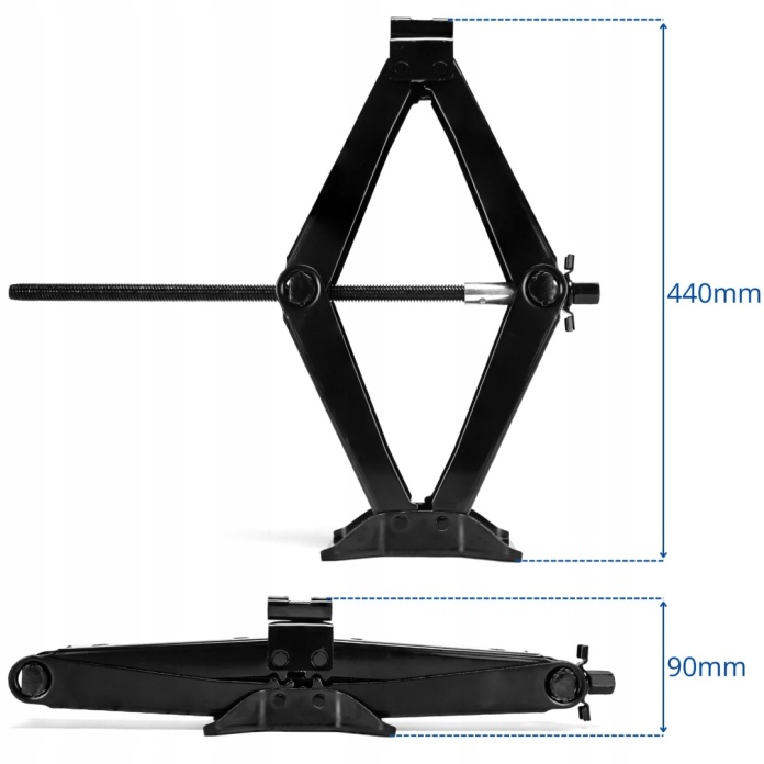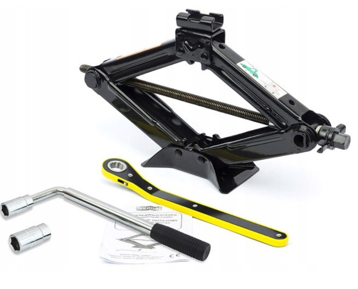 Profesjonalny podnośnik trapezowy 2t z kluczem teleskopowym do kół.