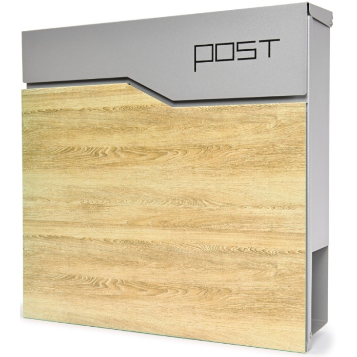 Skrzynka pocztowa na listy SN3637 Srebrny Aluminiowy + Imitacja Drewna
