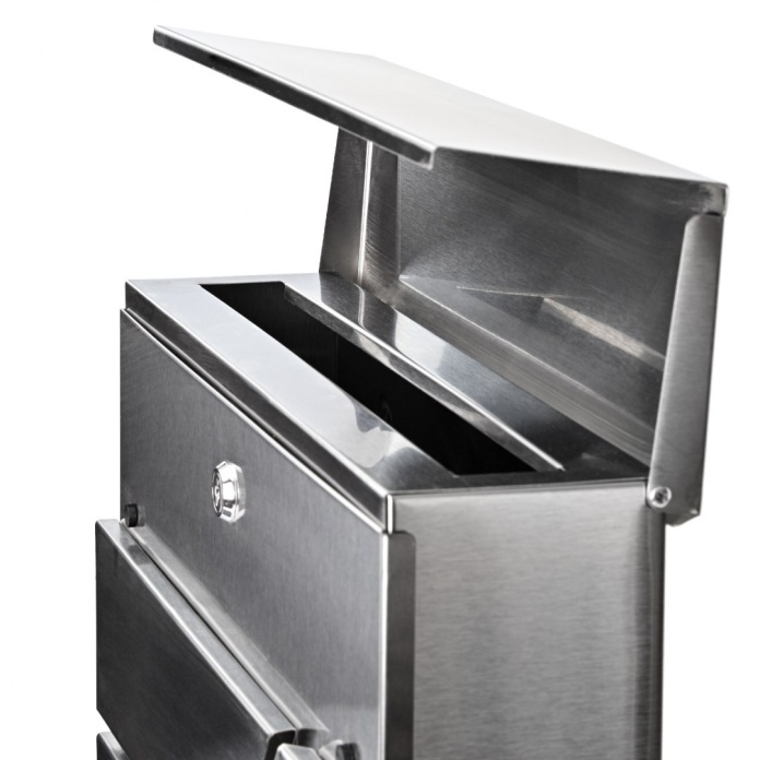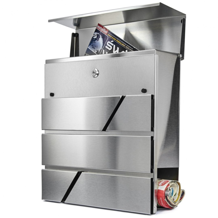 Wysokiej jakości, wykonana ze stali szlachetnej skrzynka na listy z dodatkowym pojemnikiem na gazety. Wszelka korespondencja jest bardzo dobrze zabezpieczona przed wilgocią i deszczem.