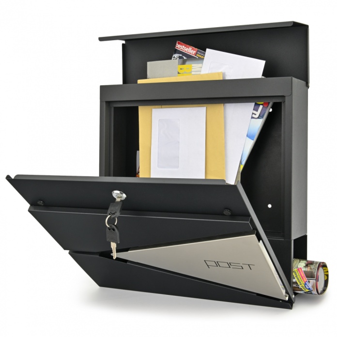 Zamykana skrzynka na listy ze stali galwanizowanej malowanej proszkowo w kolorze antracyt.